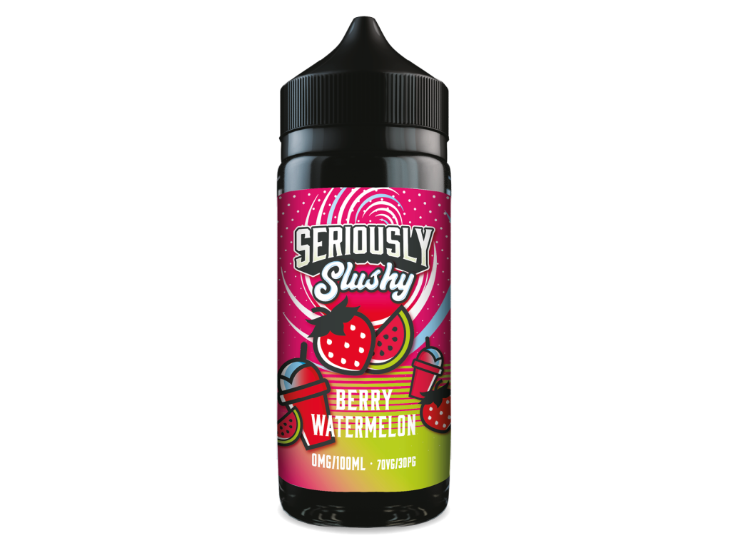 Seriously Slushy Berry Watermelon E-Liquid 100ml Shortfill. A juicy mix ofripe strawberries and slices of red watermelon makes this a stunning cool combination, irresistable!